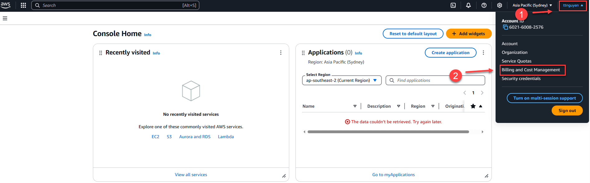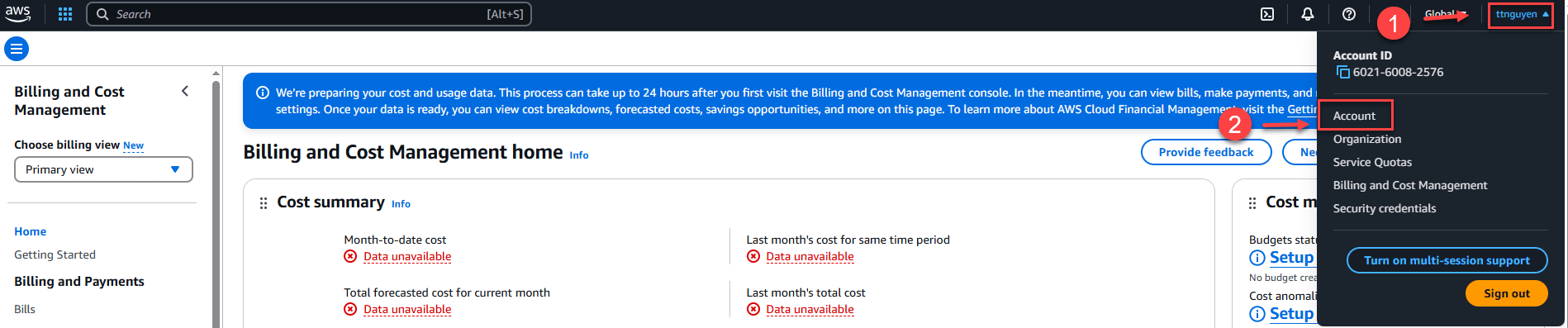 Nếu bạn không thể truy cập Billing do đang sử dụng IAM User, hãy làm theo hướng dẫn dưới đây: