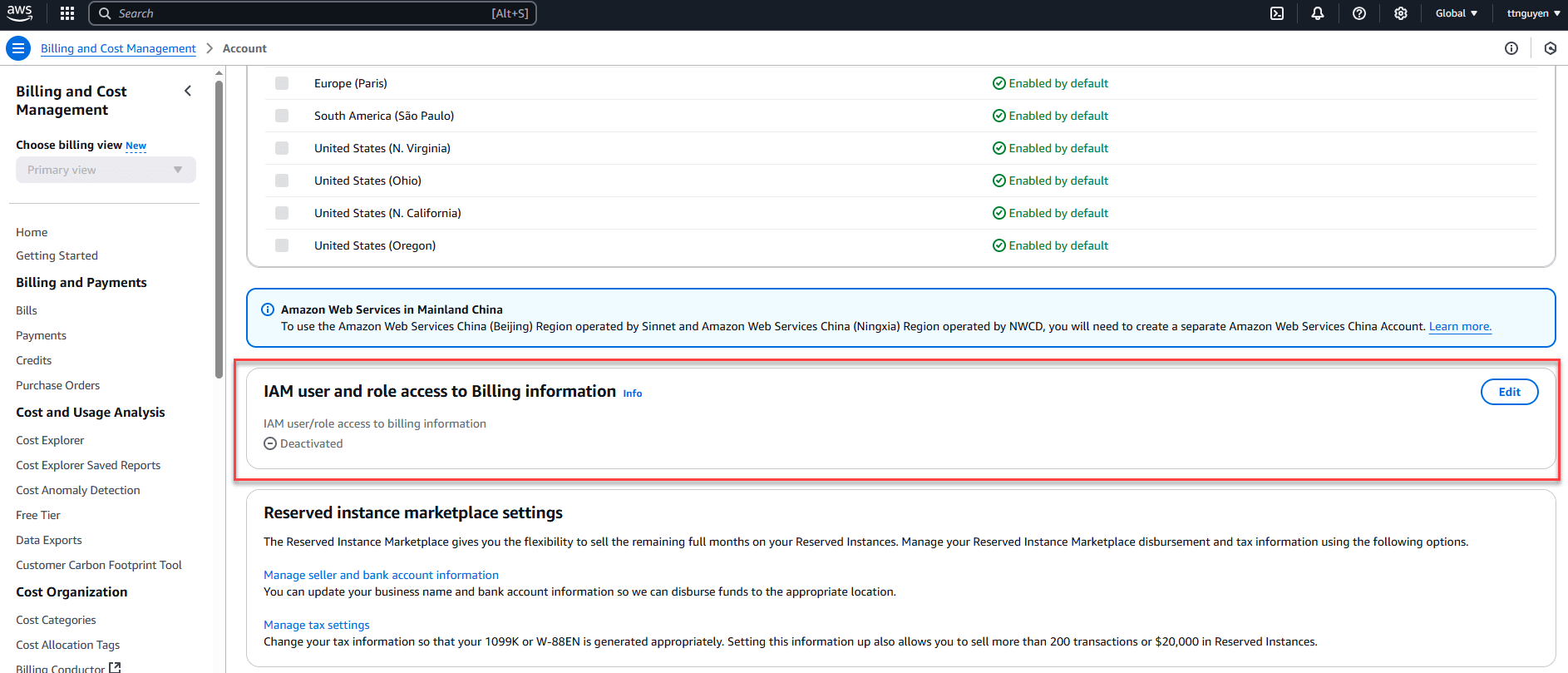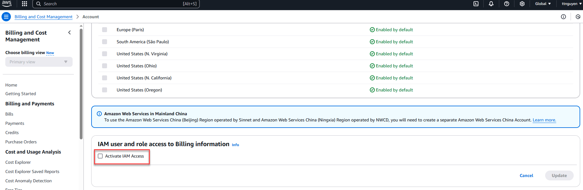 Bước 2: Cấp quyền truy cập Billing cho IAM User