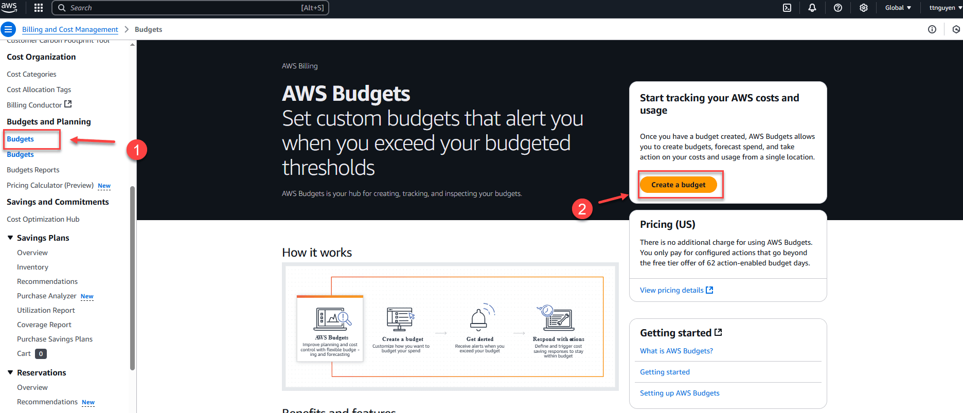 2. Hướng dẫn thiết lập ngân sách và cảnh báo AWS chi tiết từng bước