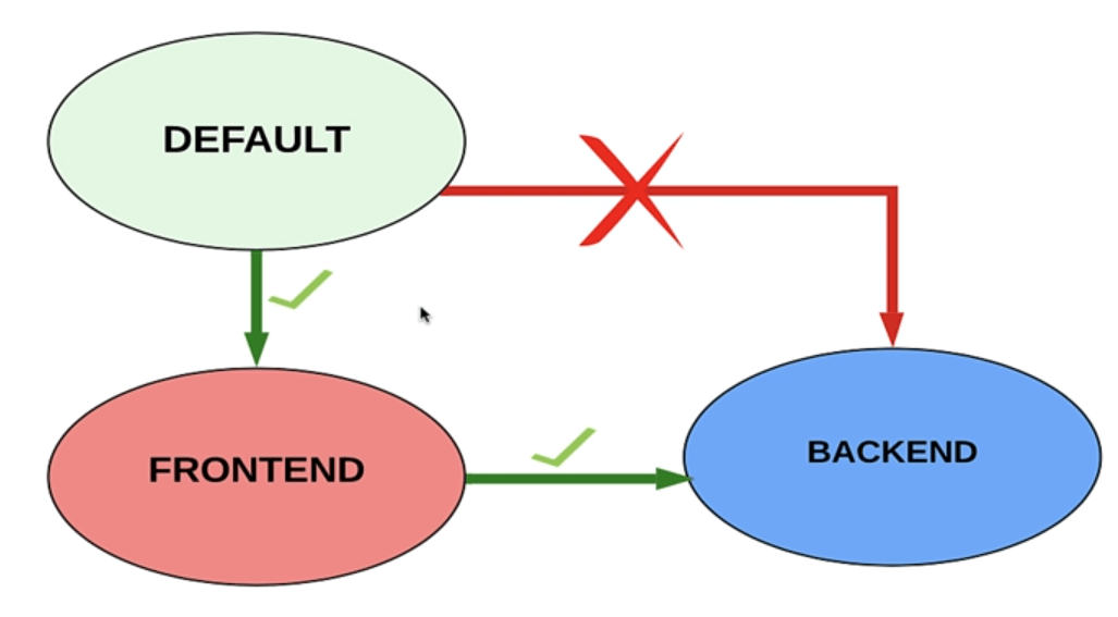 - Chặn toàn bộ các Pod từ namespace khác (như default) truy cập vào backend.